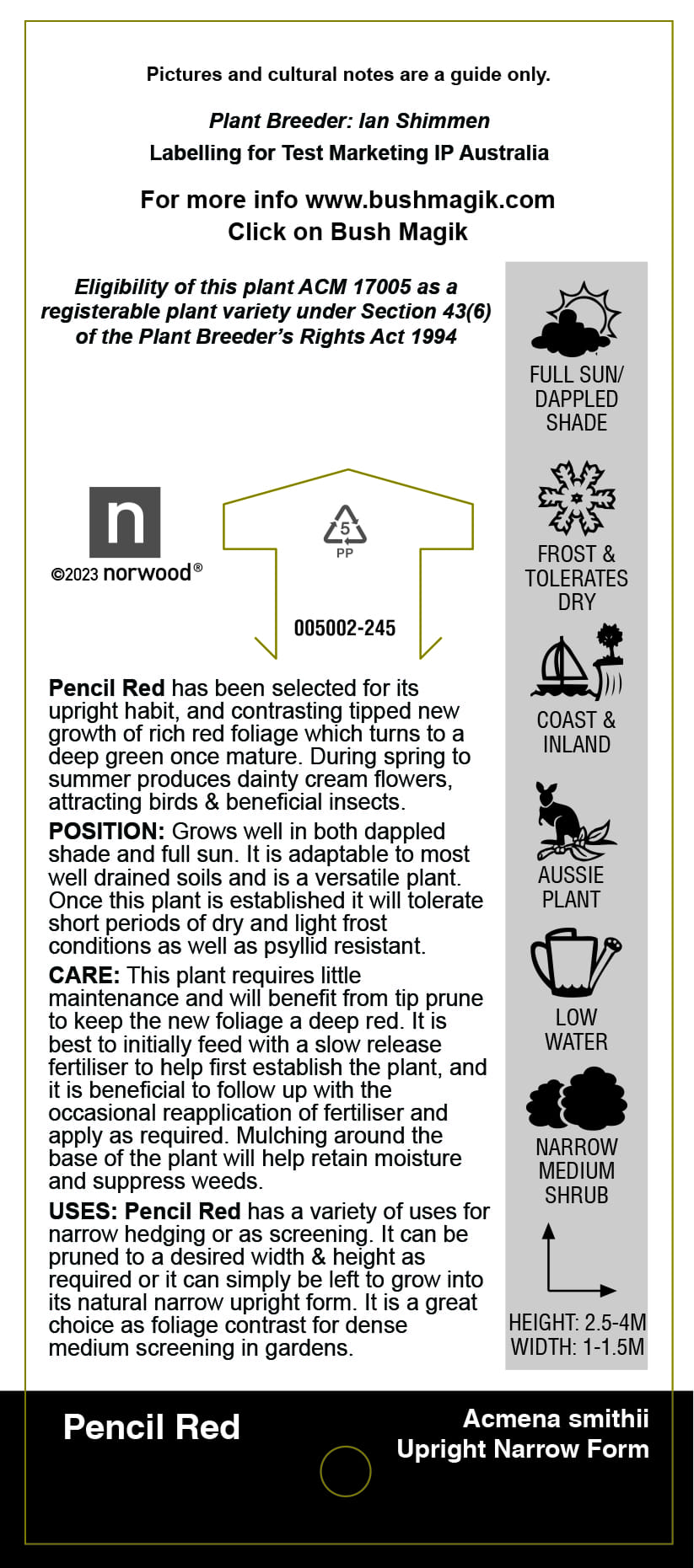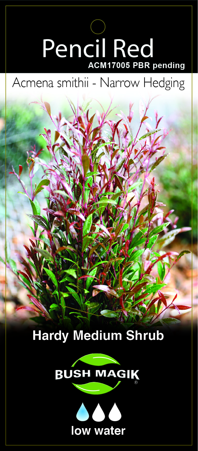 Acmena smithii 'Pencil Red' - Label