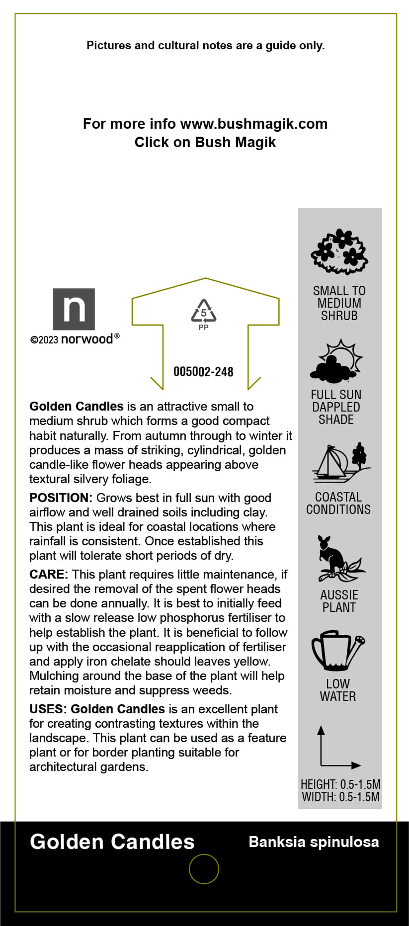 Banksia spinulosa 'Golden Candles' - Label