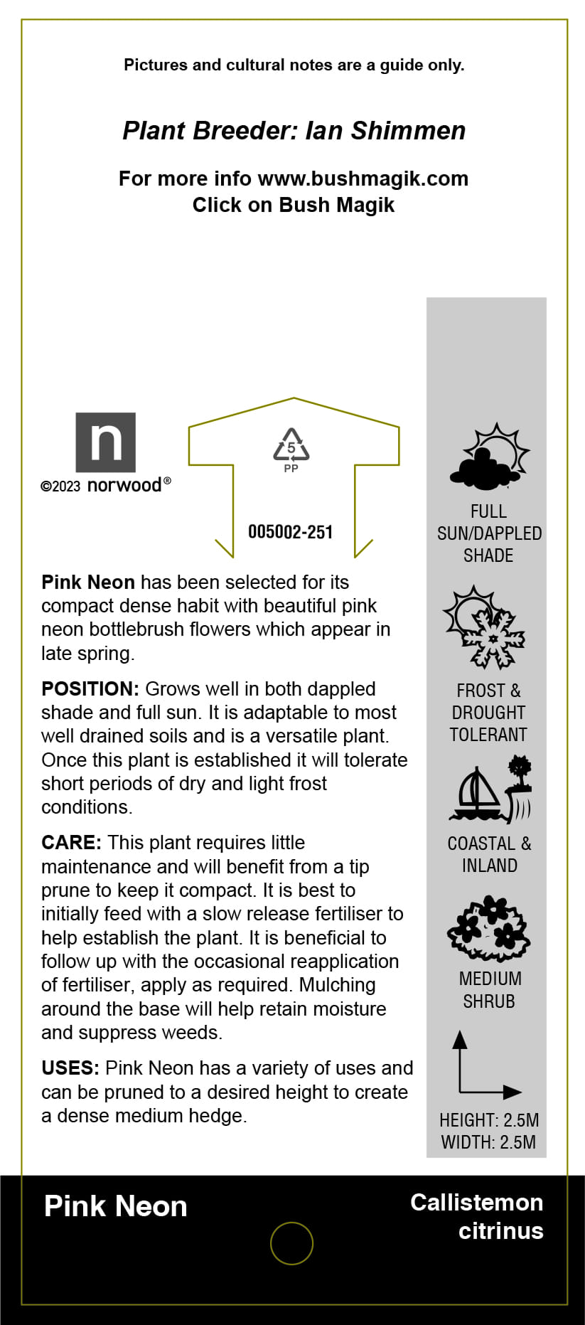 Callistemon citrinus 'Pink Neon' Label