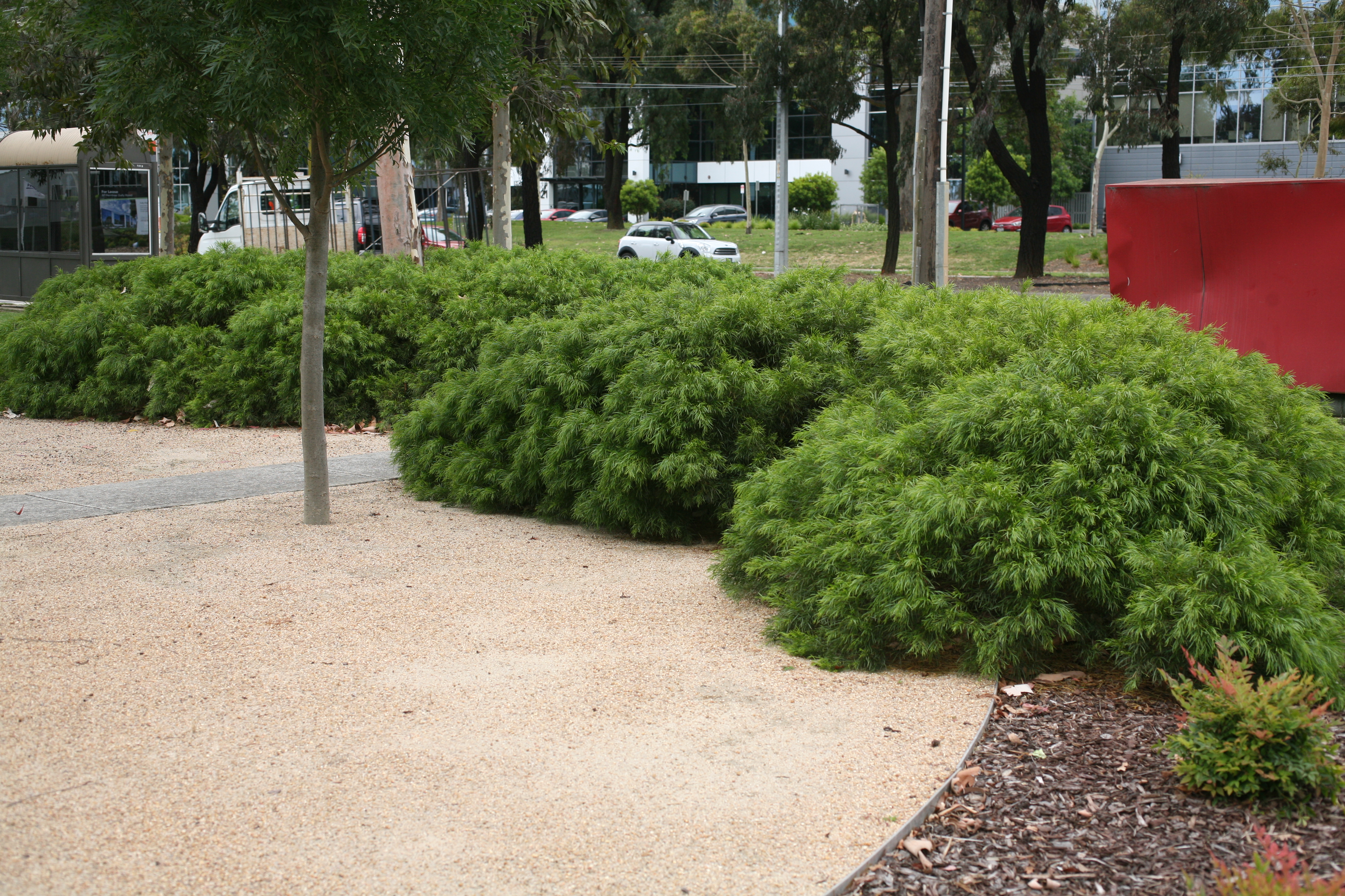 | Information Guide | Acacia cognata Mini Cog is a hardy low maintenance small to medium shrub with attractive foliage and habit; it is adaptable to cope with dry conditions and light frosts. Once mature Mini Cog may show a light sprinkling of soft pale-yellow ball flowers in late winter to early spring (this plant is not a prolific flowerer). This outstanding performing dwarf form of Acacia cognata has been highly recommended by the Retail and Landscape industry. Other dwarf forms of Acacia cognata's in the market include: Acacia Curvaceous, Acacia Dazzler, Acacia Fettuccine, Acacia Green Mist, Acacia Limelight, Acacia Waterfall and in the US Acacia Mini Cog is marketed under the name of Acacia Cousin It. The dwarf forms listed of Acacia cognata can be mixed planted to create textural variations in the landscape. |