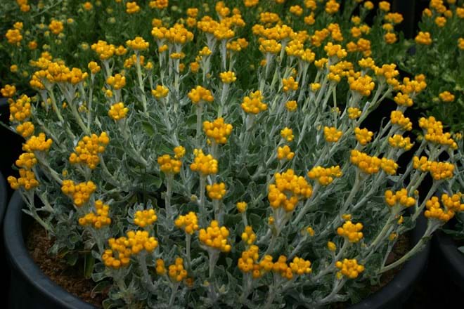 Chrysoceplalum apiculatum 'Silver Sunburst'