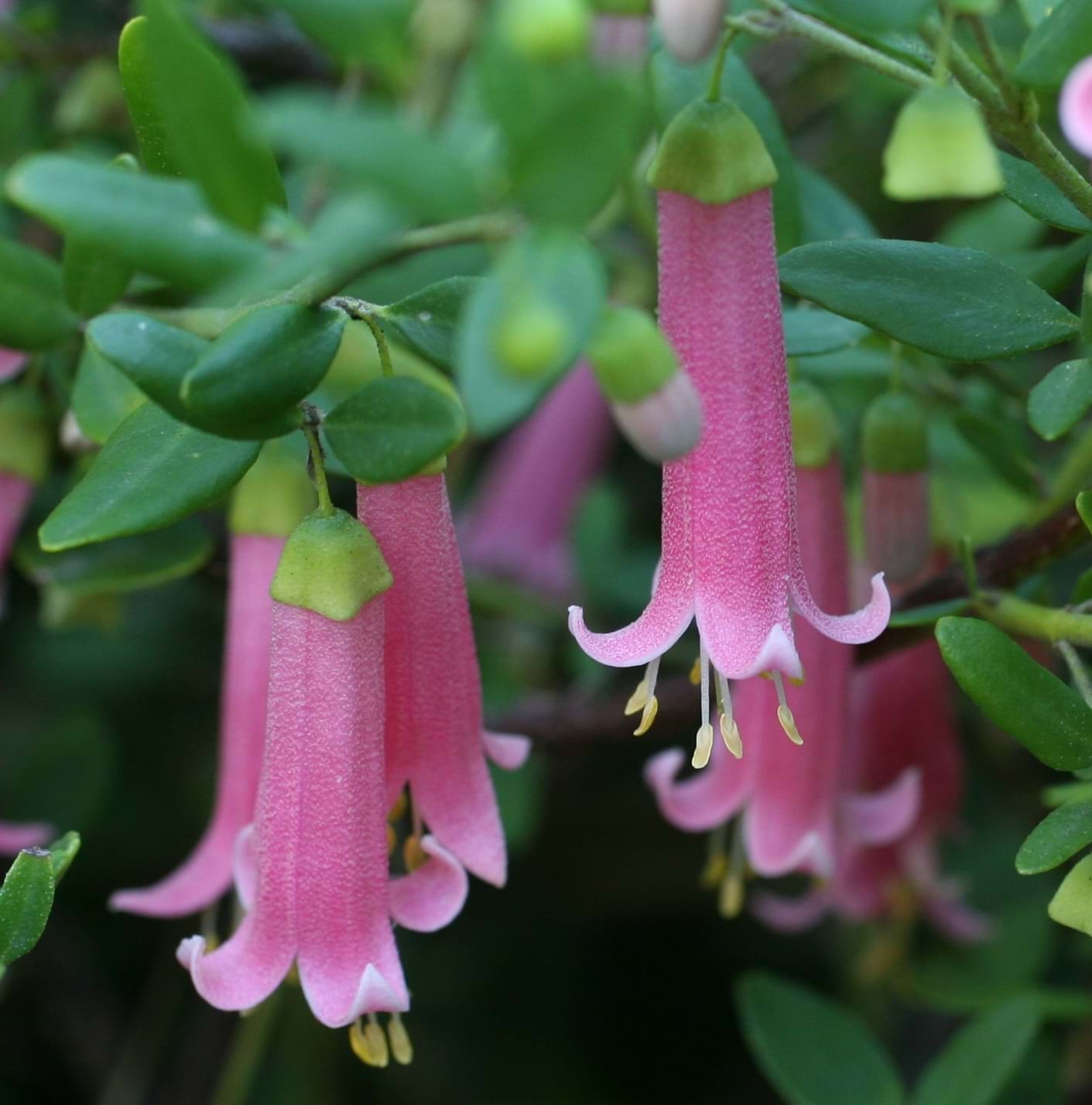 This Correa glabra is a pink flowering form selected by Craig Jacobson. It is a small shrub and is different to other Correa glabra species because of its pink coloured lantern shaped flowers showing in autumn to winter. Correa glabra comes in many different selections commonly named Rock Correa or Rock Fushsia. Other selections include Barossa Gold, Coliban River, Ivory Beacons, Ivory Lantern, Ivory Chimes and Lime Chimes which can be mixed planted to create textural and level variations in the landscape. Pink Linx makes an excellent low growing hedge for a variety of conditions and is very useful for smaller gardens and provides nectar for bees & honey-eater birds over the cooler months. |