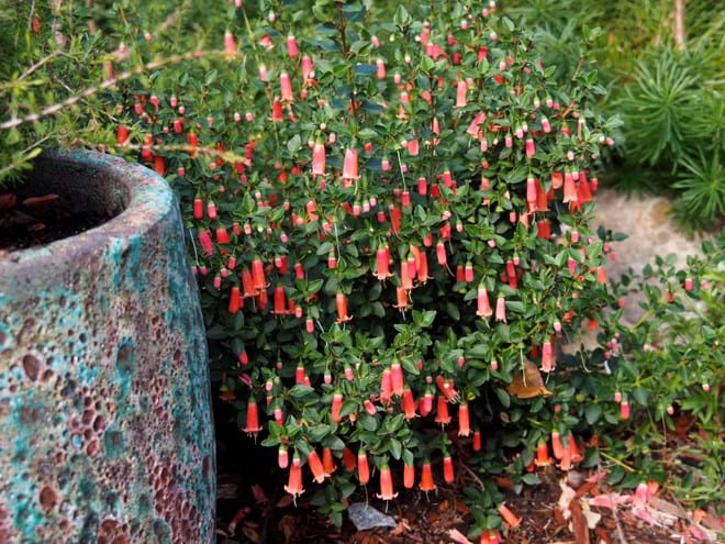 Ember Chimes is one of the many selected seedlings from the Correa Chimes Range. This plant has vigour, maintains a dense habit, and forms a compact small low shrub. It is different to other Correa species because of its hybrid genetic parentage, and displays an abundant mass of orange dainty bell shaped flowers between autumn to late winter. The flower colour and type are similar to Autumn Blaze, Orange Glow, Ring A Ding Ding, Salmon Correa and Amber Chimes. Ember Chimes is an excellent low growing small shrub suitable for low border plantings and is very useful for smaller gardens, it also has the added bonus of providing nectar for bees and honey-eater birds over the cooler months. |