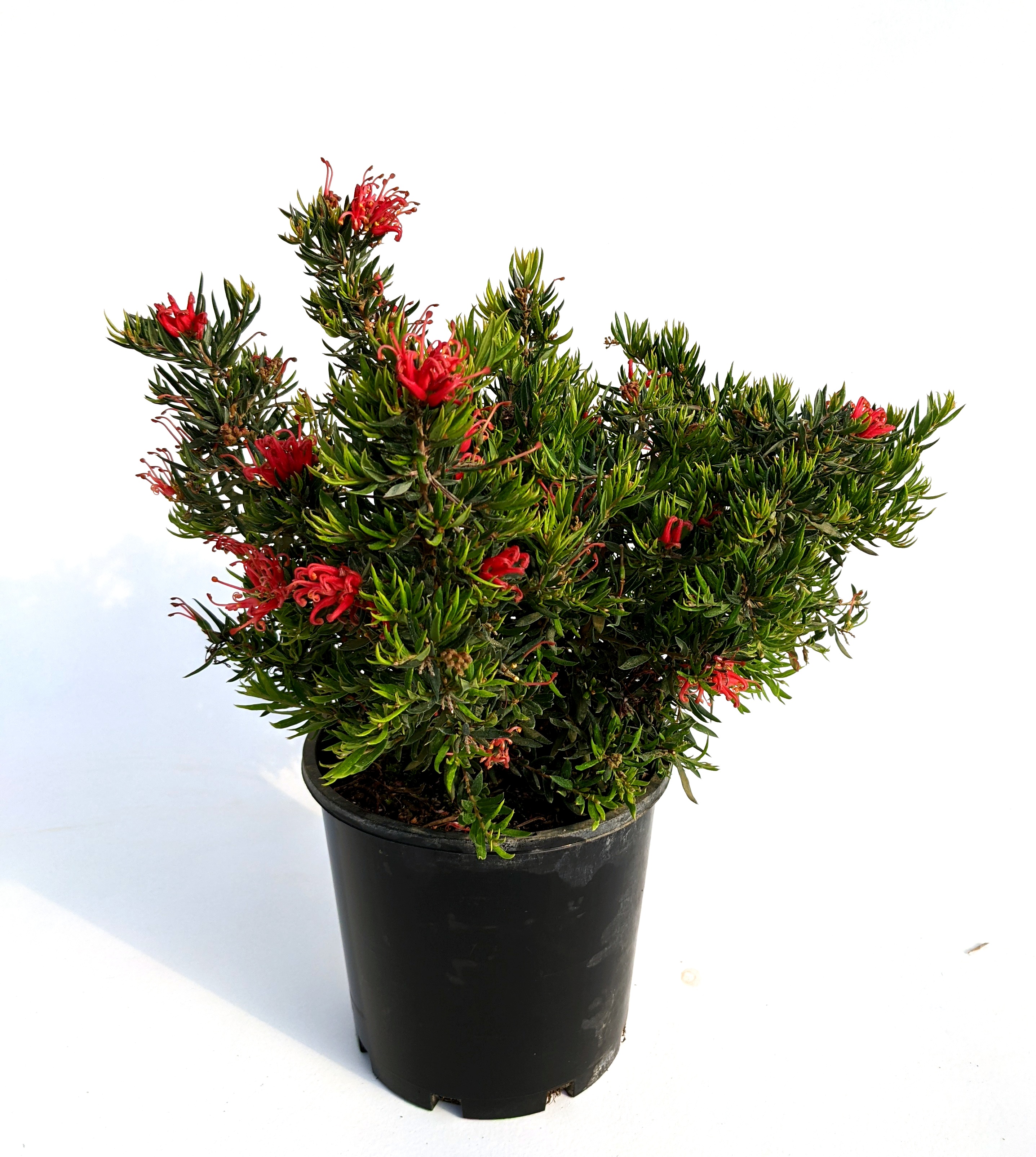 Regal Red is selection from a mix of seedling hybrid Grevillea’s. Regal Red is a compact small shrub which produces a spectacular mass display of red flowers between late winter to early summer. Regal Red is useful where low level plantings are required or for large landscape sites or small garden beds. This plant produces colour & nectar for fauna from late spring through to early summer. It can be mix planted with similar varieties to give texture variations, such as Grevillea Cherry Cluster, Grevillea Knockout, Grevillea New Blood, Grevillea Lady 'O' and Grevillea Ruby Jewel. |