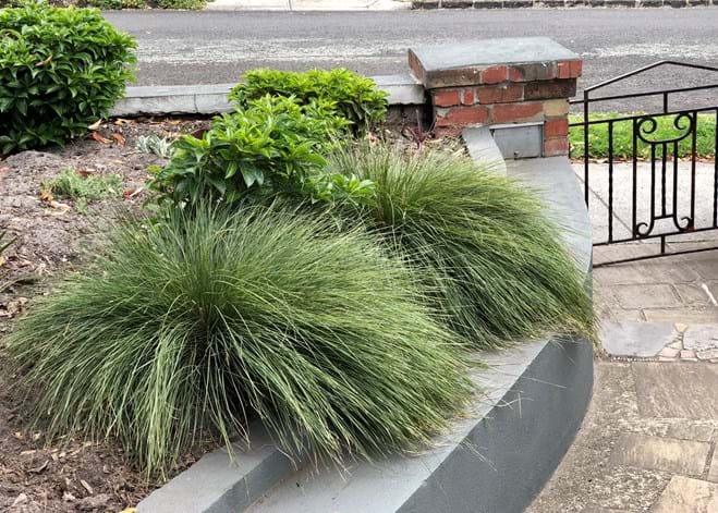 Lomandra Mist has dark bluish-grey leaves that weep gracefully back to the ground. In summer fragrant small yellow flower spikes emerge from reddish-brown buds. Mist forms an attractive contrast for low level plantings and has a tufted grass like appearance. It can be planted in a range of situations, such as rockeries, and in general garden beds on mass and stays evergreen all year around. Other Lomandra confertifolia subsp. rubiginousa varieties include, Lomandra Frosty Top, Lomandra Silver Grace, Lomandra Seascrape, and Lomandra Pacific Sky. |