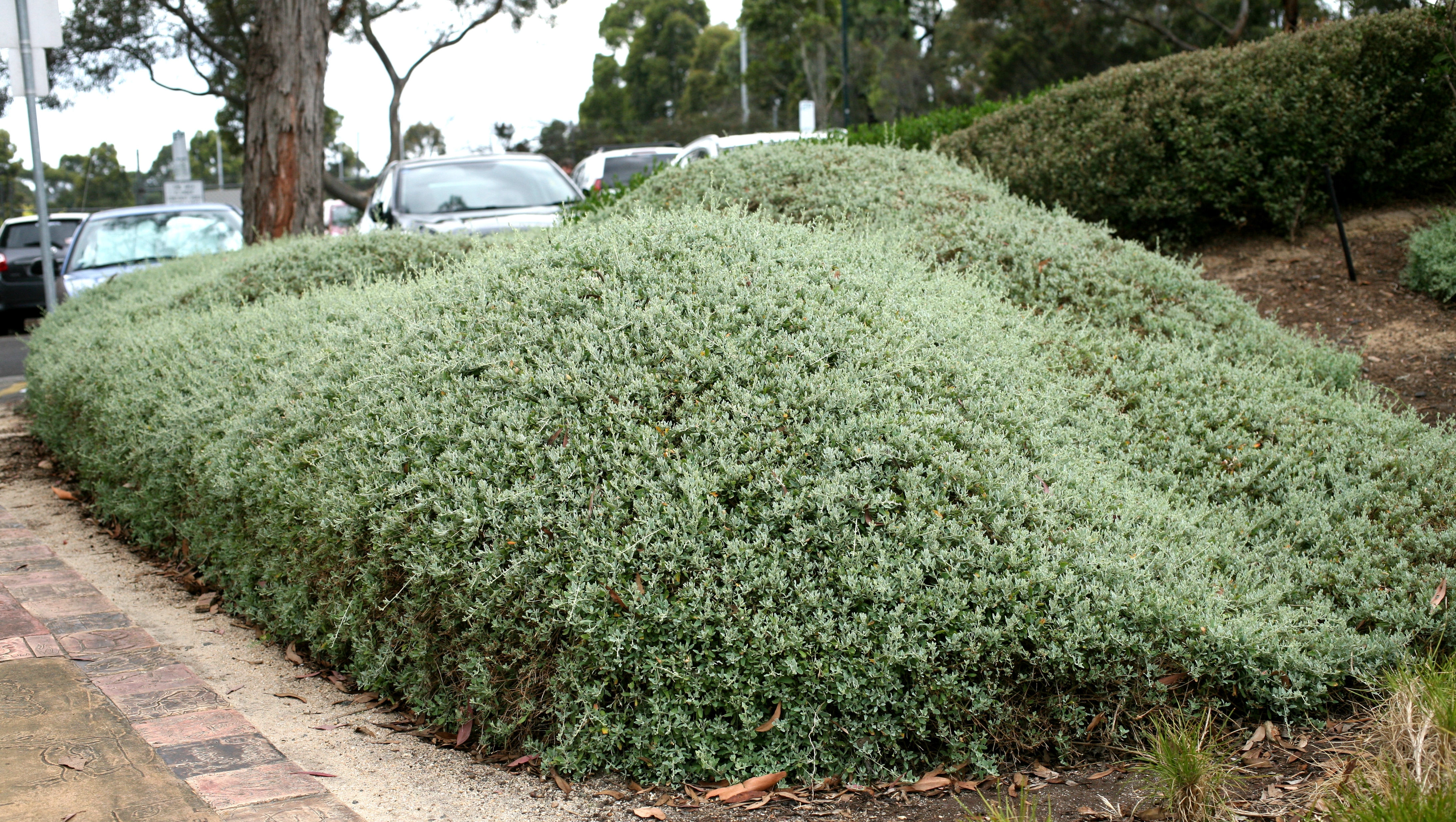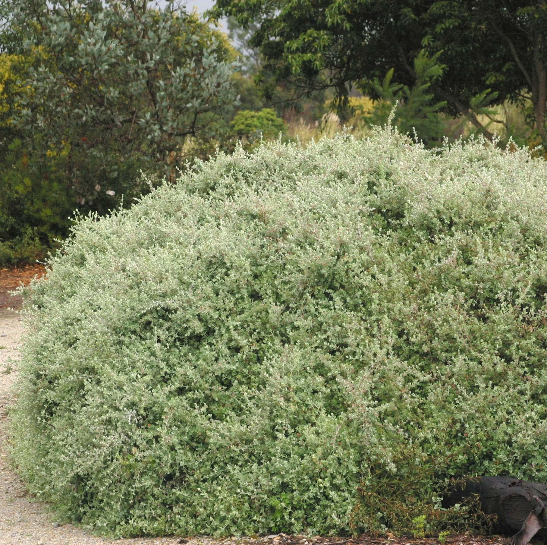 Silver Border is a selected form of Rhagodia spinescens creeping Salt Bush and is an excellent border and can be used as a low to medium screening plant. Silver Border creates a thick hedge in the most difficult situations. Rhagodia spinescens is commonly known as Spiny Saltbush, Berry Saltbush, Hedge Saltbush, Aussie Flat Bush, and Grey Edge. |