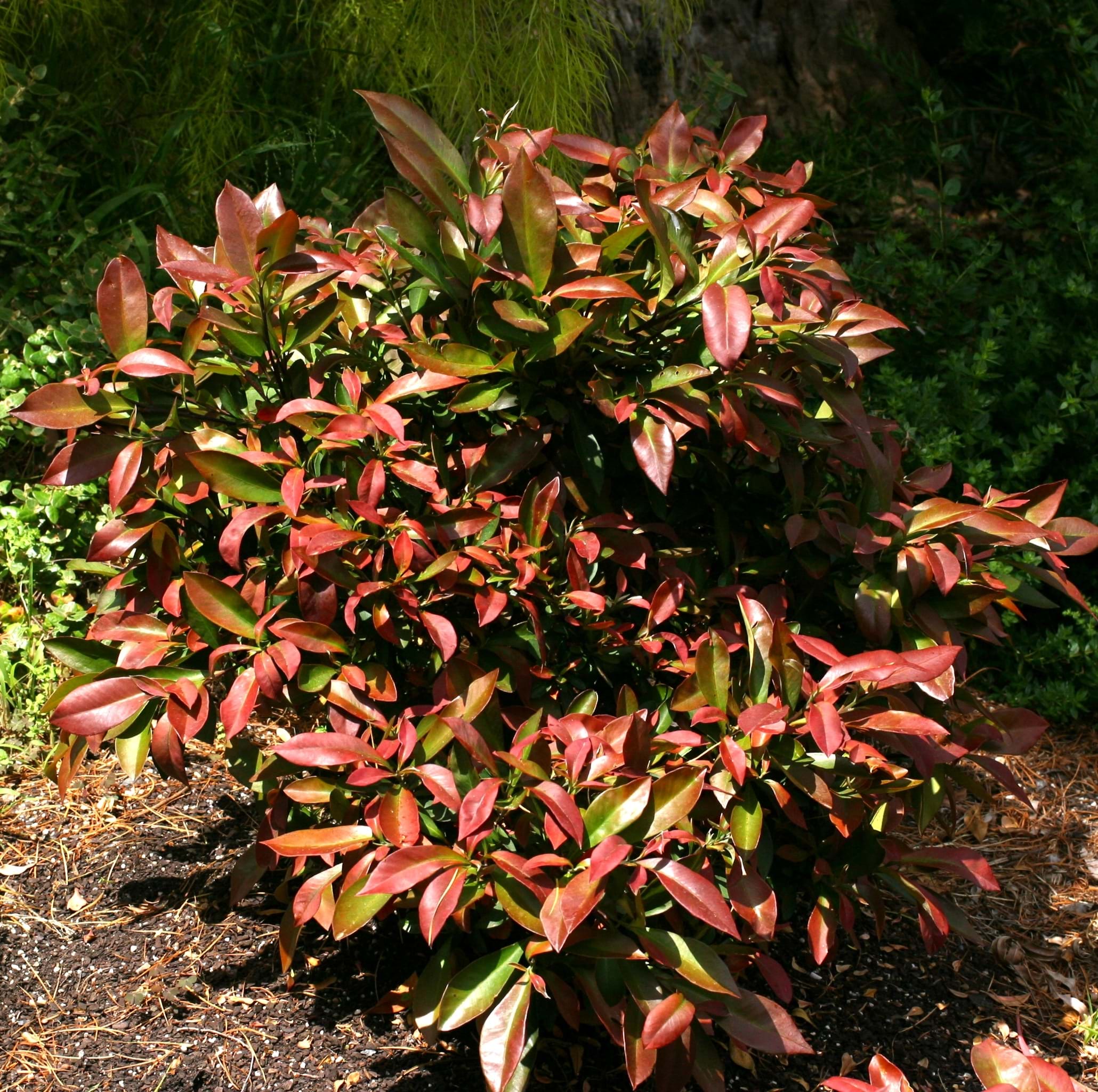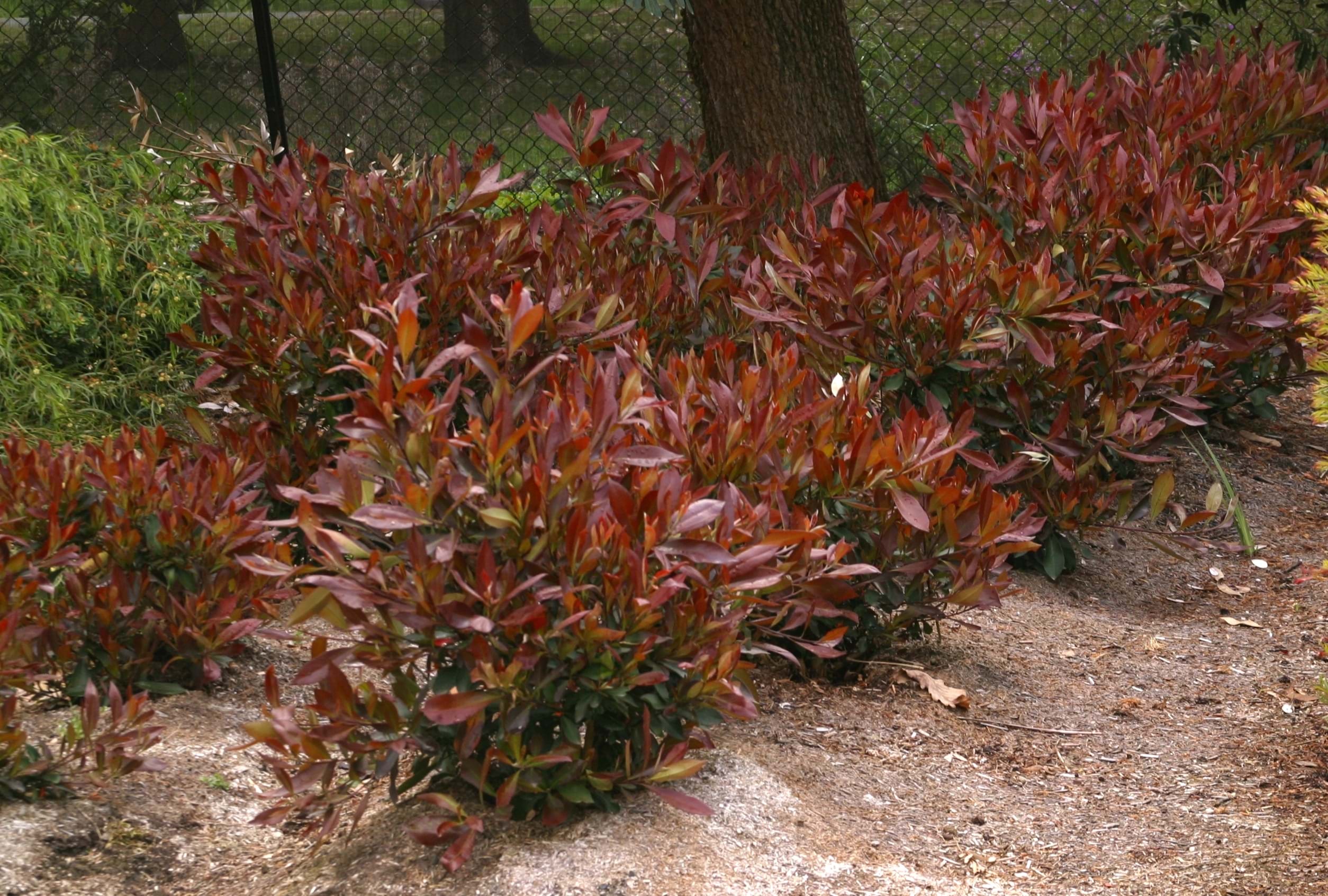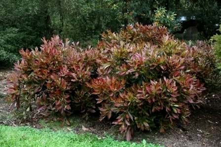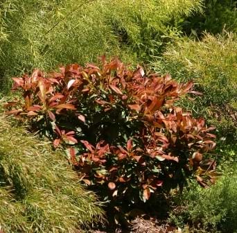 | Foliage Colour | Burgundy new growth turning to dark Green |